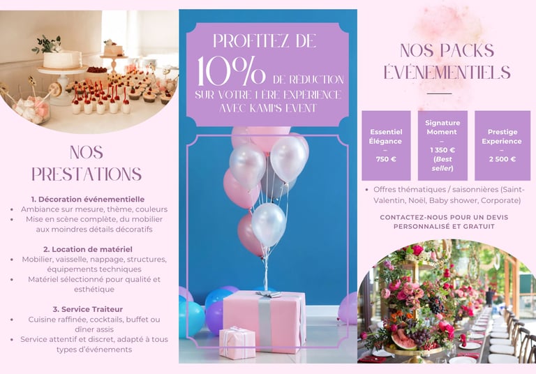 Spécialisés dans la décoration et la location pour mariages, anniversaires, baby showers et autres, nous créons des ambiances uniques et chaleureuses.
